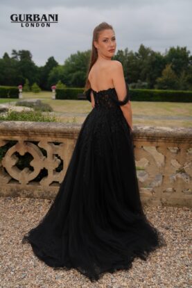 Black Off-Shoulder Floral Appliqué Tulle Prom Dress – G2844