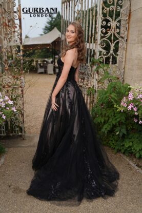 Black Satin Corset A-Line Prom Dress – G2808