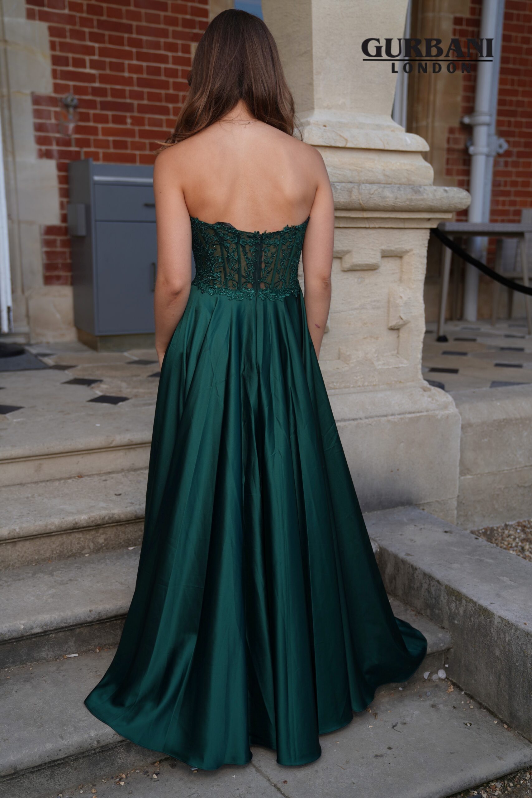 Emerald Lace Corset Satin A-Line Prom Dress with Slit – G2493
