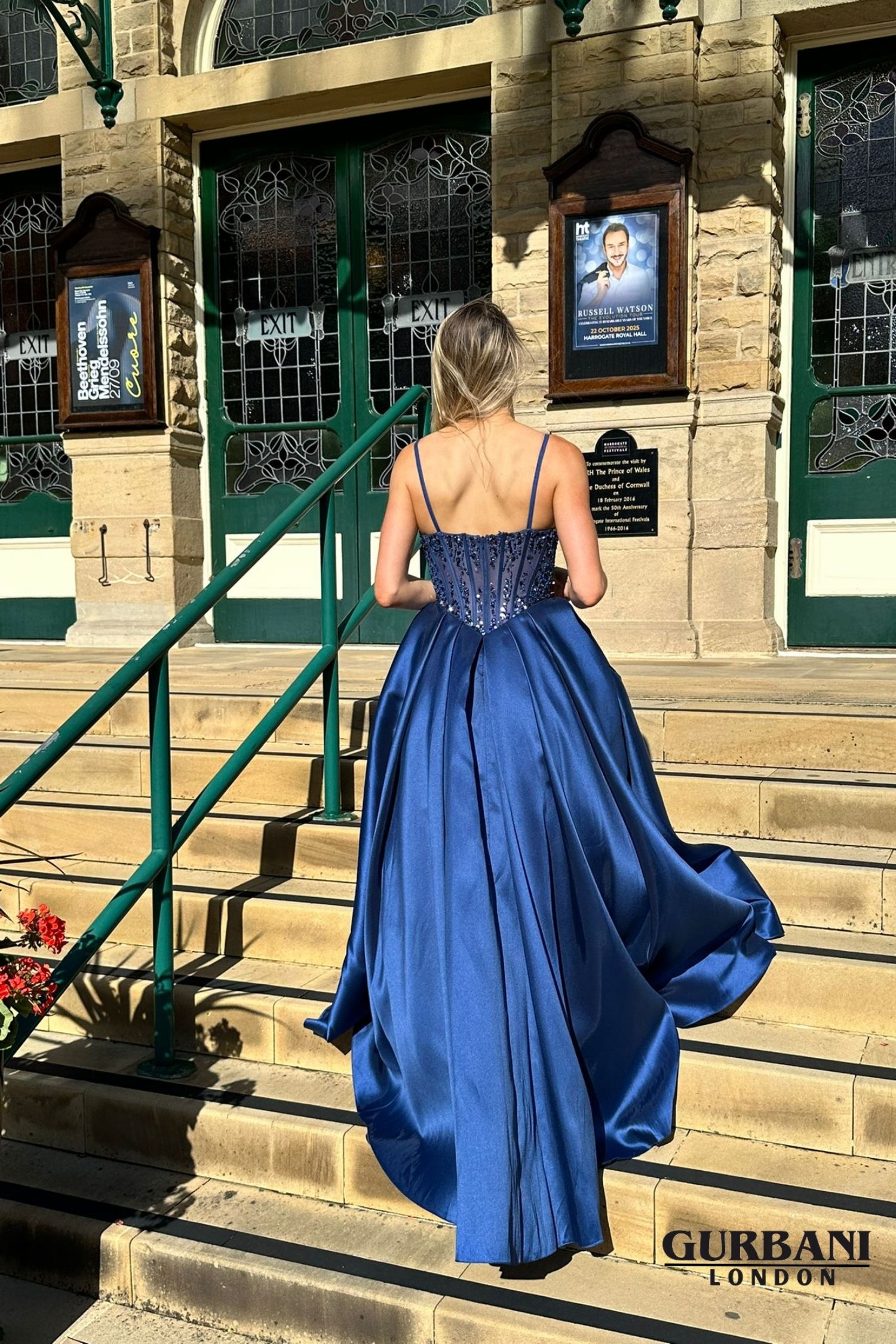 Fabric: Satin with embellished corset bodice