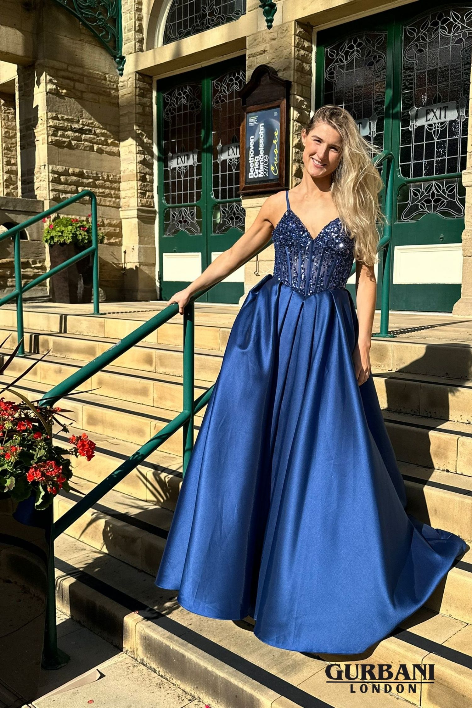 Features: Embellished bodice, structured corset, full skirt, soft sheen finish, elegant flow