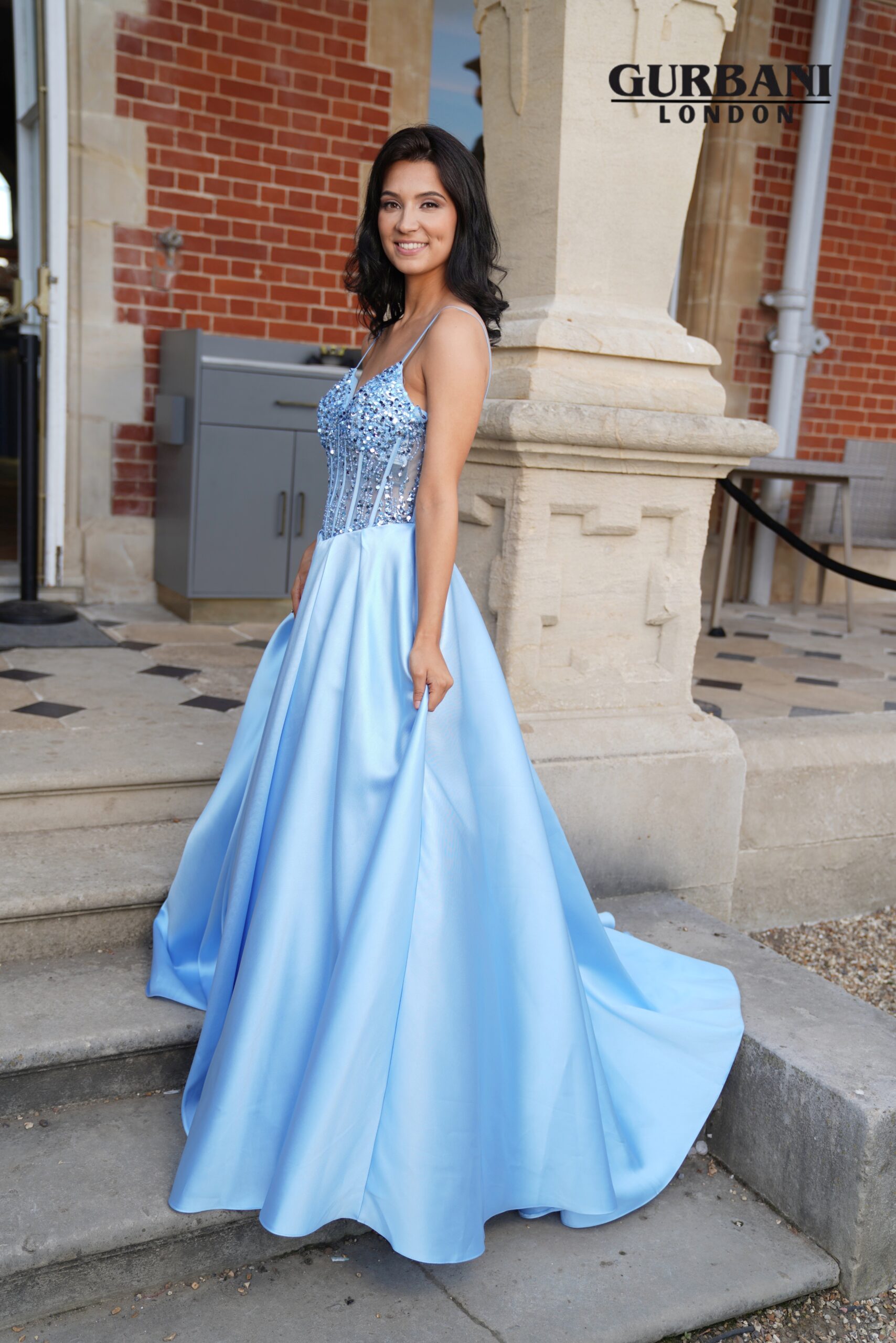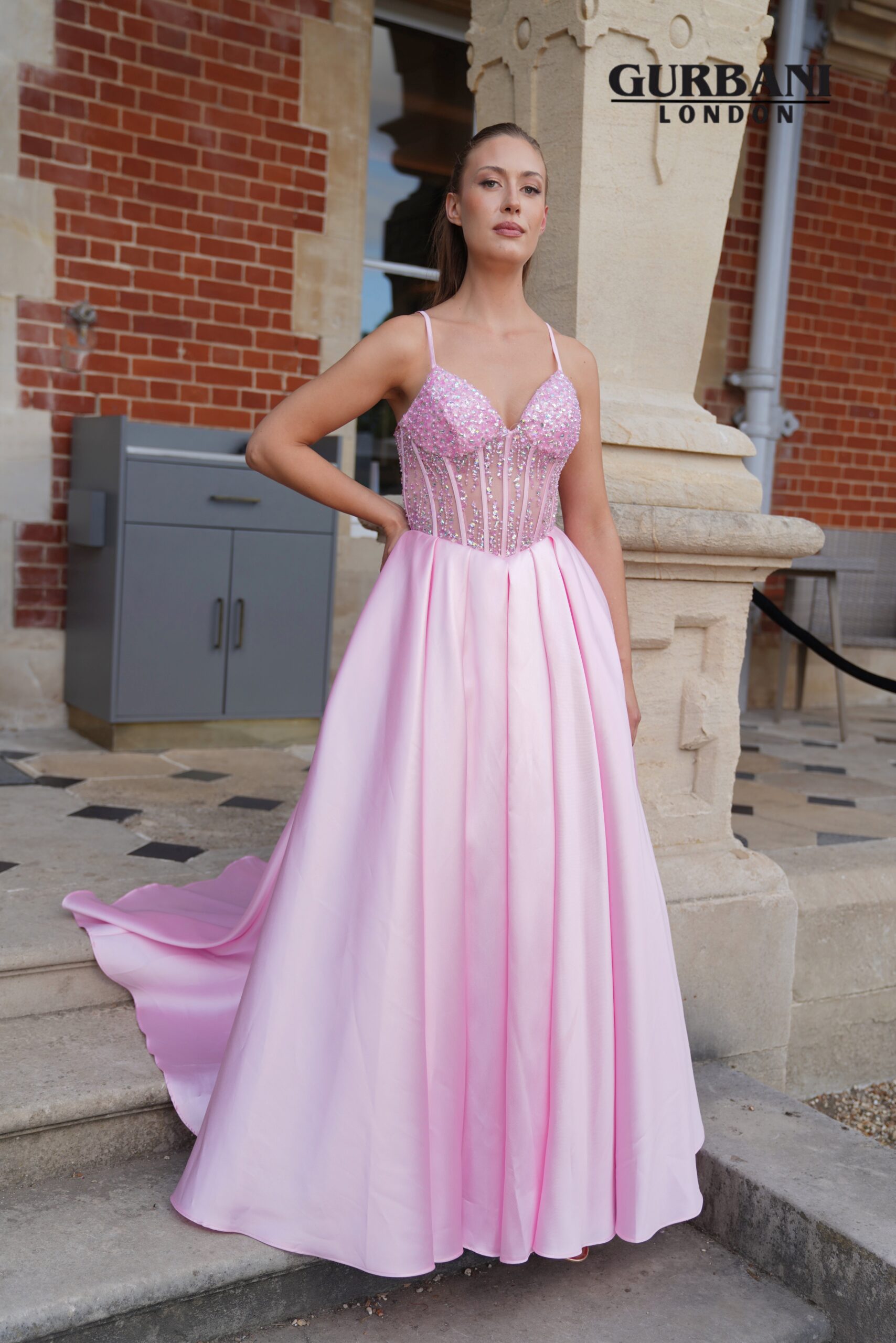 Fabric: Satin with embellished corset bodice