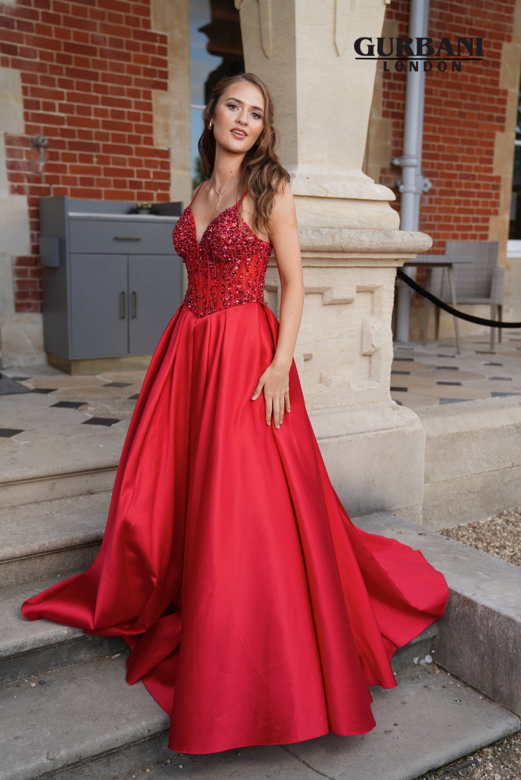 Red Embellished Corset Satin Ball Gown Prom Dress – G2580