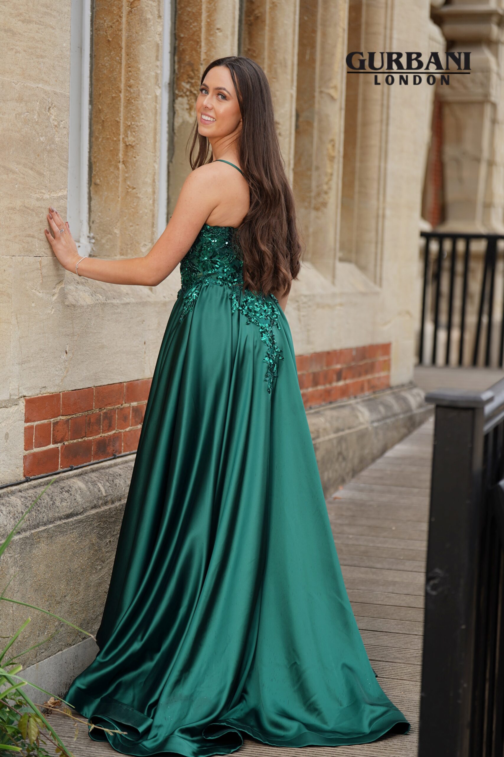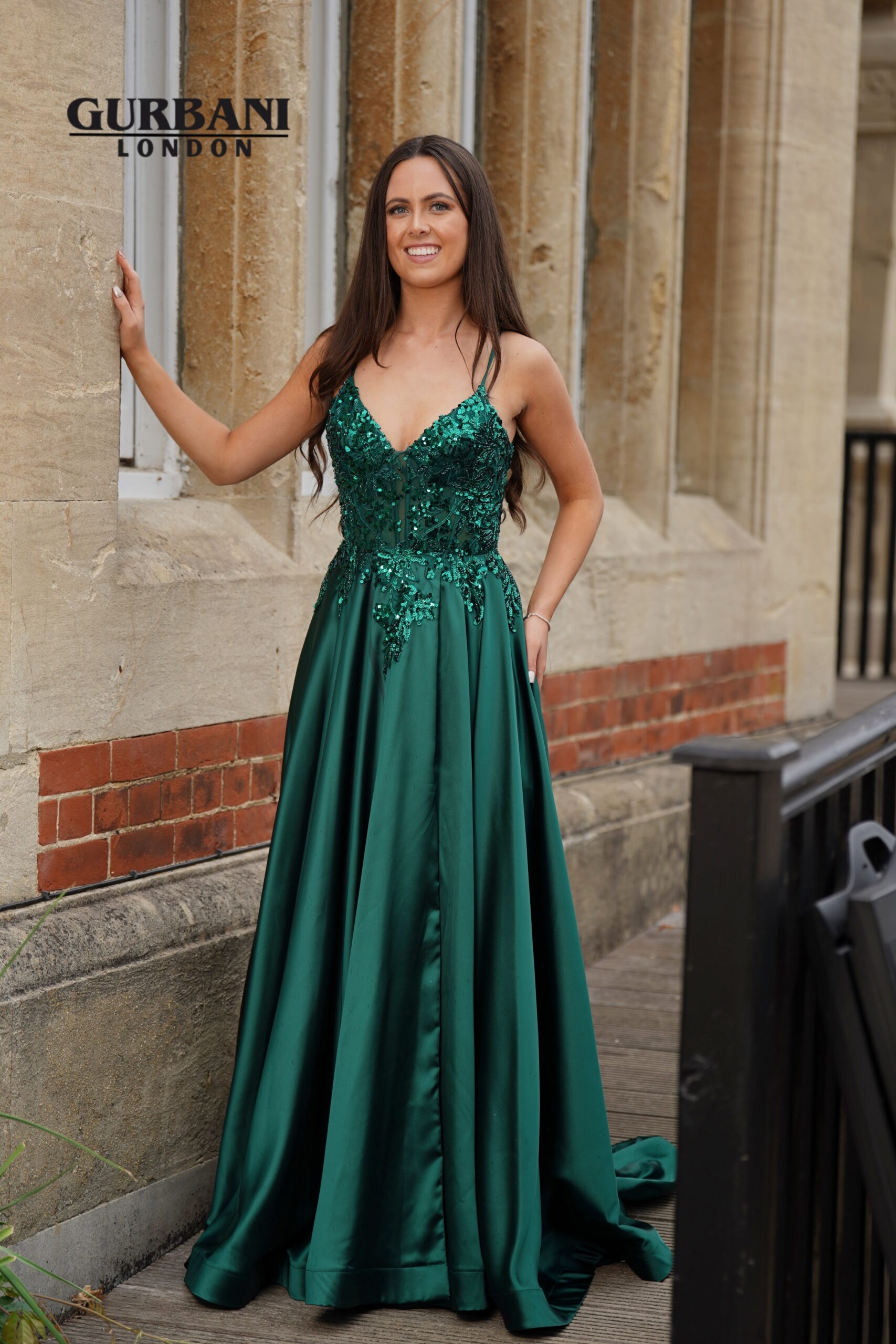 Emerald Beaded Corset Satin A-Line Prom Dress – G2807